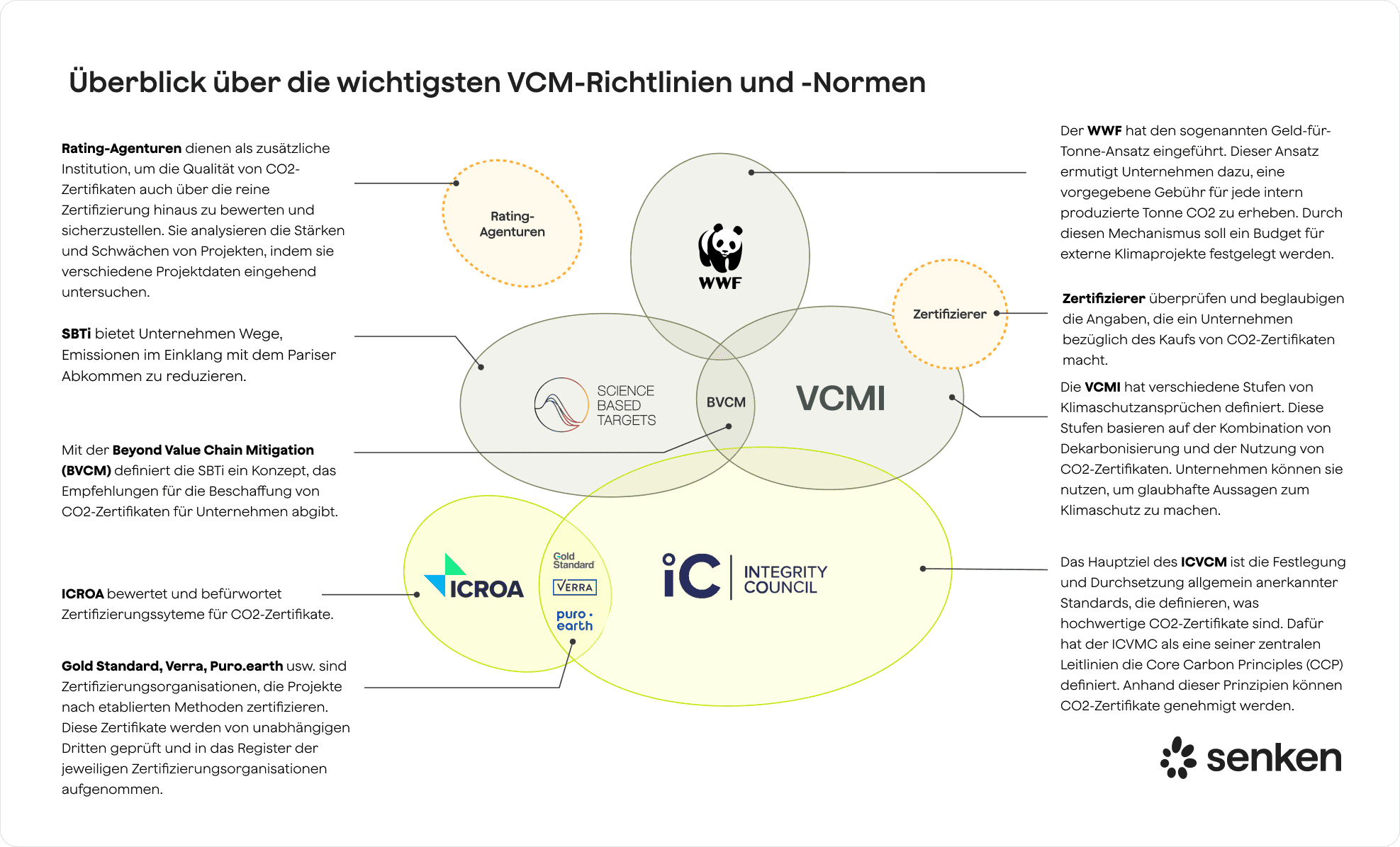 Der Scope 3 Action Code der VCMI erlaubt die Nutzung von Zertifikaten, um eine Scope-3-"Emissionslücke" zu schließen, wenn Sie strenge Reduktionskriterien erfüllen und hochwertige Zertifikate verwenden. Beide Rahmenwerke positionieren Zertifikate als Ergänzung zu, nicht als Ersatz für, eine tiefgreifende Dekarbonisierung.